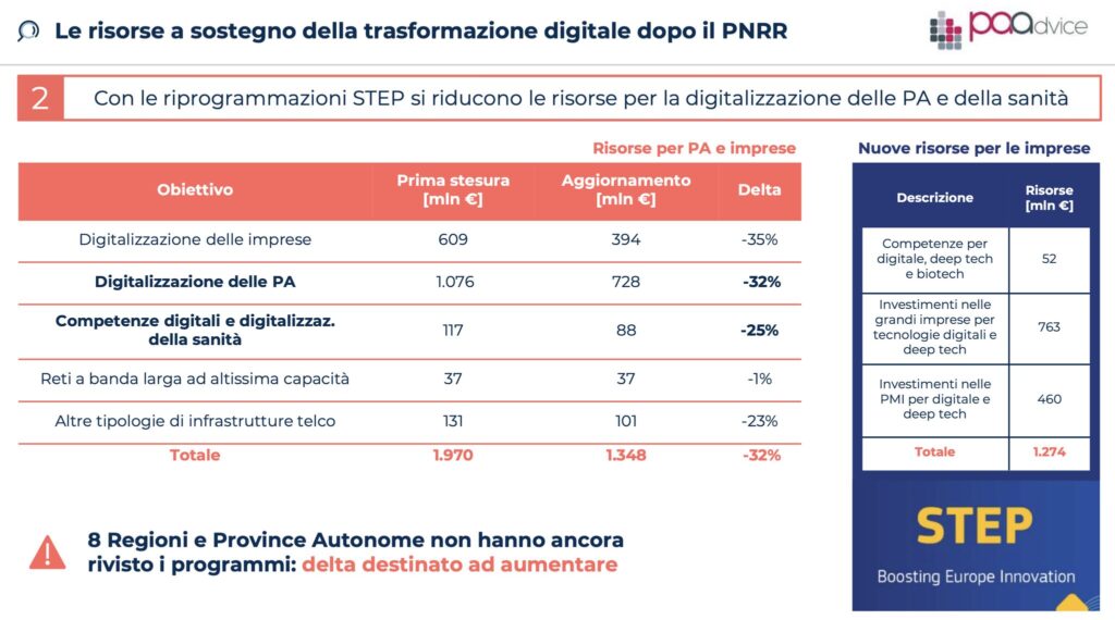 Il contributo di PA Advice al lavoro dell’Osservatorio si è concentrato proprio su questo punto: una lettura dei dati che evidenzia come, a fronte delle riprogrammazioni in corso, la sostenibilità della trasformazione digitale non possa essere affidata solo alla tecnologia, ma richieda governance, competenze e continuità operativa, valorizzando le sinergie con la Politica di Coesione ed i Fondi Strutturali europei. Una riflessione che ha trovato spazio nel report finale presentato al convegno.